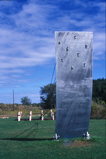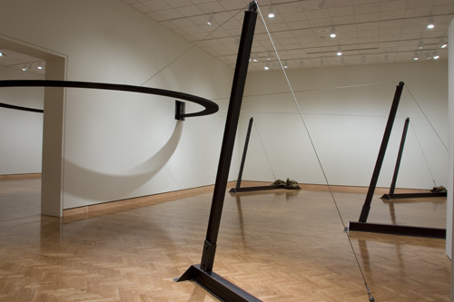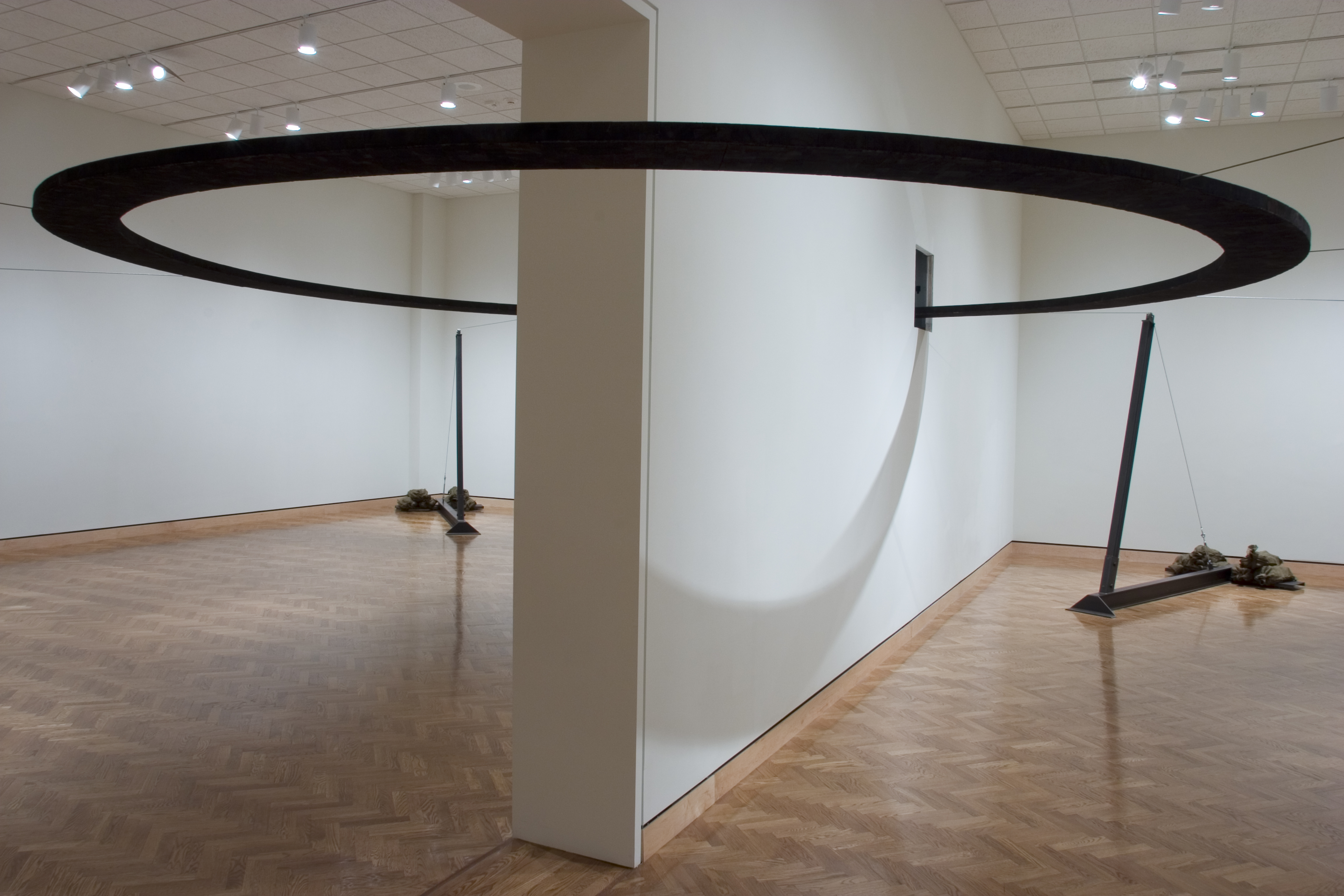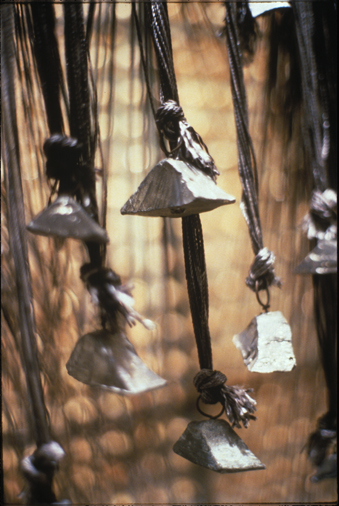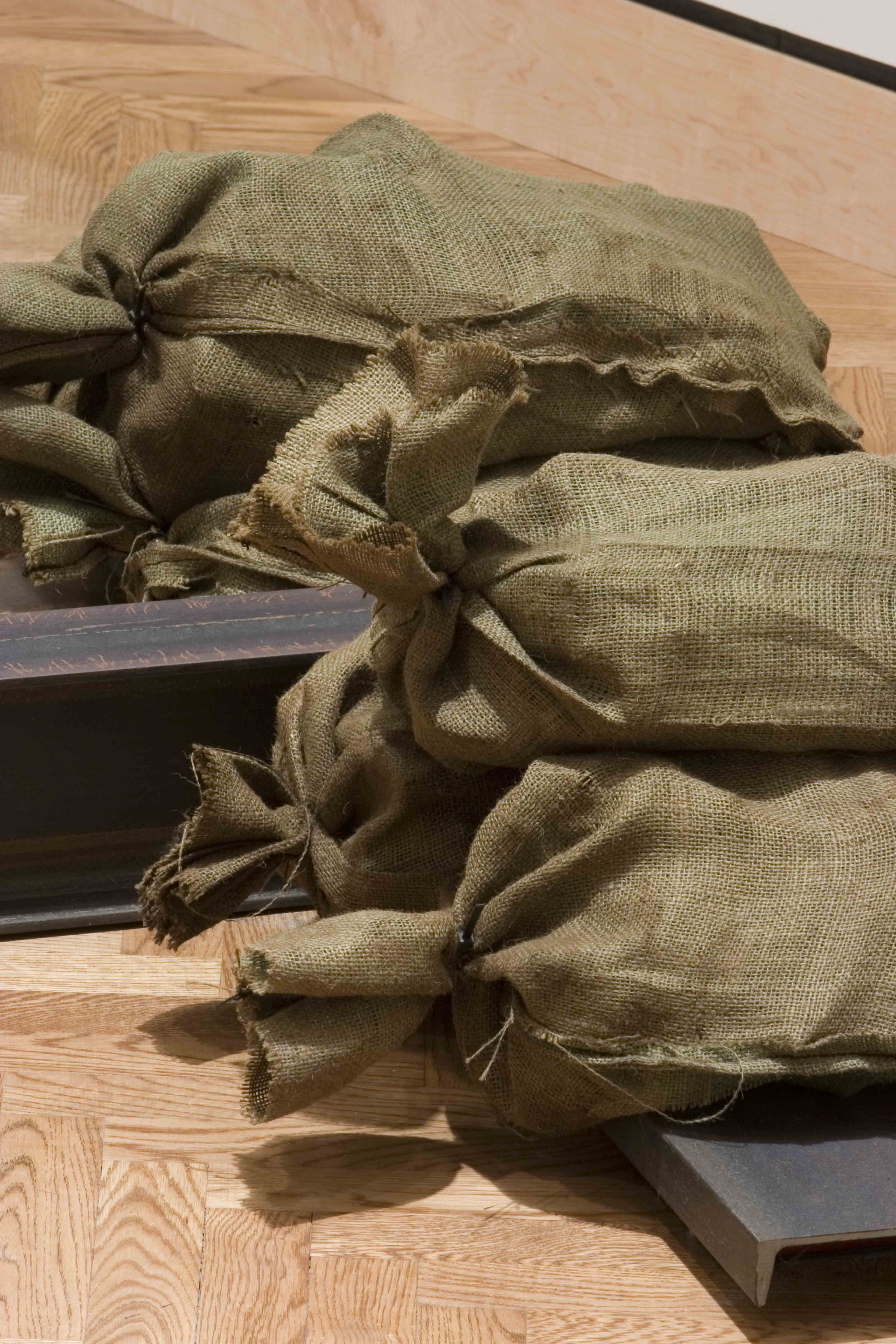 Steel, rope, charred balsa wood, and burlap